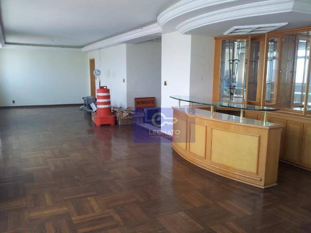 Sala três ambientes bem ampla com um lindo Bar já instalado com balcão de aprox.. 2,0mts de cristal bizotado, com sanca em toda sua volta iluminada e piso em sucupira.