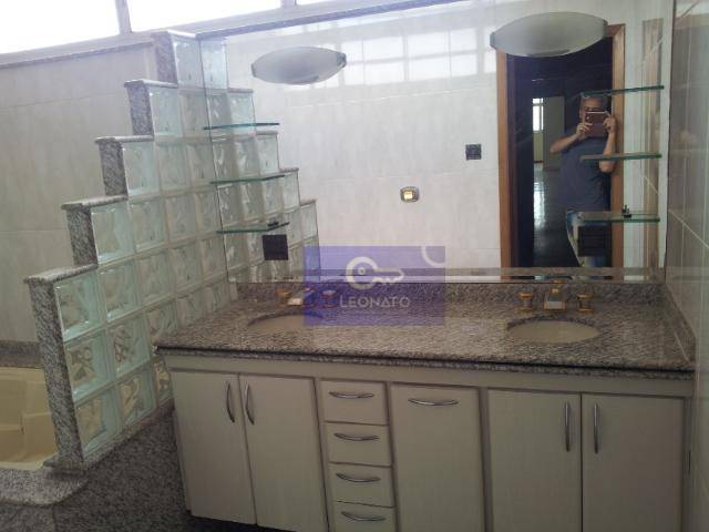 Excelente apartamento com 3 suítes, sendo a do casal Suíte Master bem grande, com hidromassagem, box separado, balcão com duas cubas, todo em granito, amplo closet. Mais duas suítes amplas com banheiros em granitos, um azul Bahia e o outro em verde Ubatuba. Todos com armários embutidos em cerejeira e piso em sucupira.